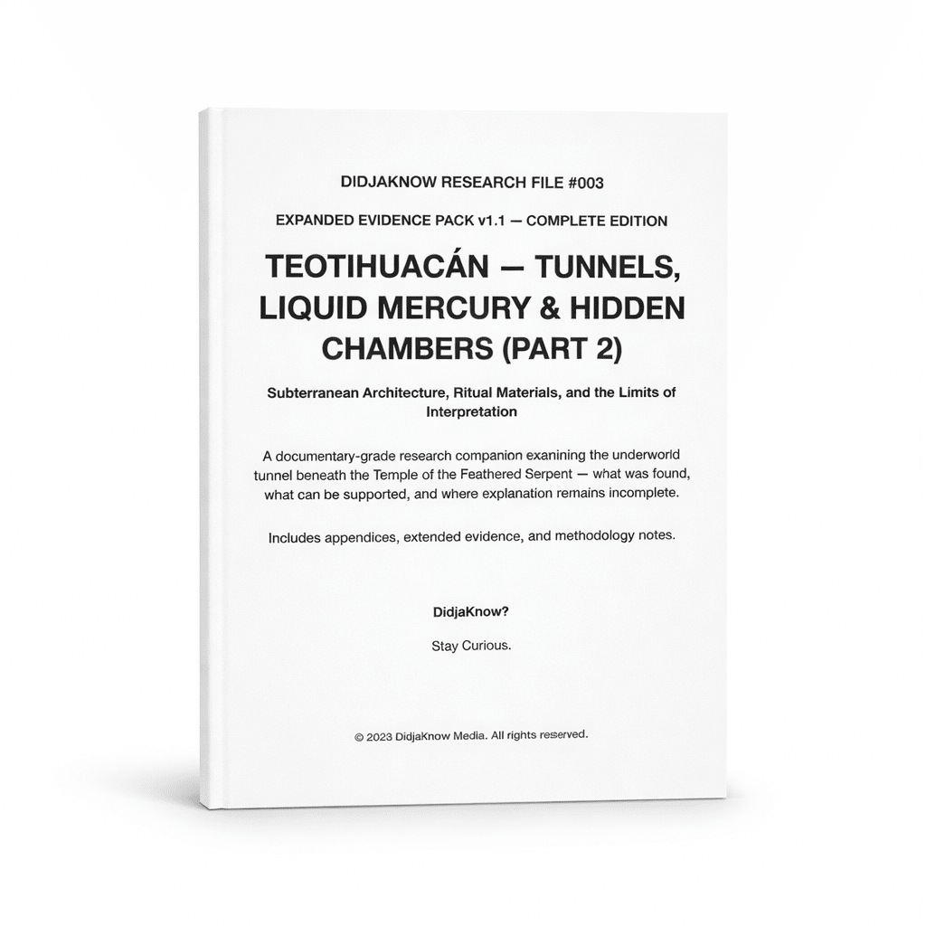 EP03 — Complete Investigation Edition is the definitive archival release of EP03 — Teotihuacán: Tunnels, Liquid Mercury & Hidden Chambers.